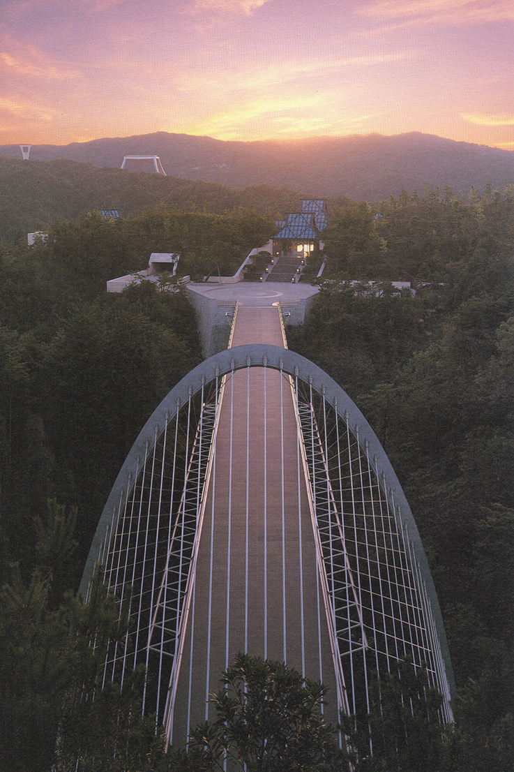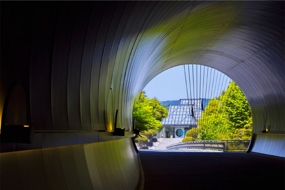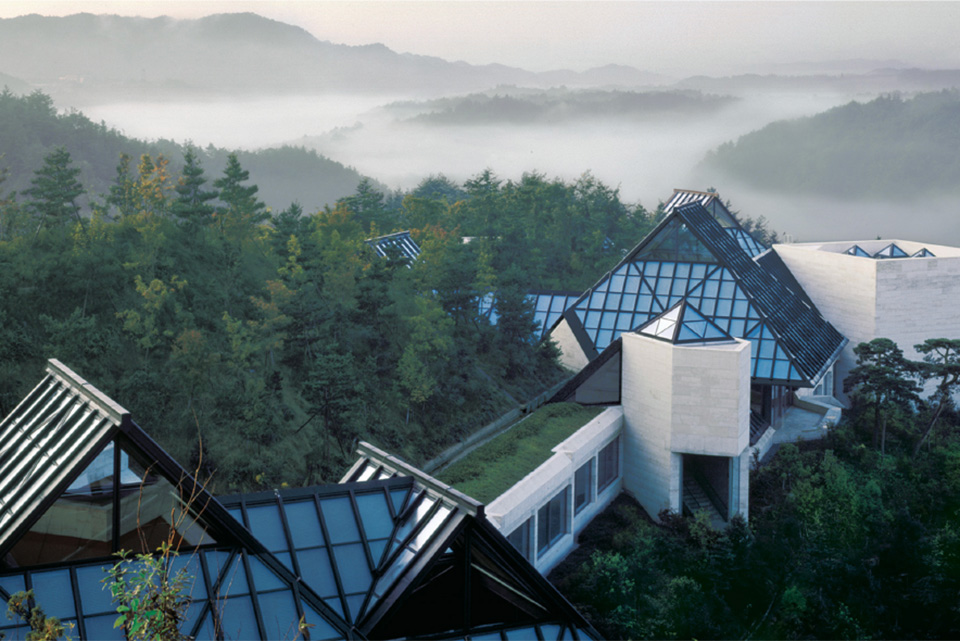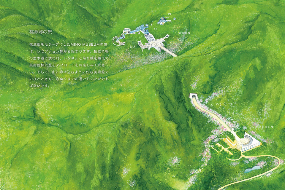 Parisのルーブル美術館を設計した巨匠 I.M.Pei 氏による美術館。その桃源郷というコンセプトを具現化するために、山中においてトンネルを抜け、橋を渡った先に、体積の8割を地中に埋め、数多くの美術品を展示している。大学院生時代から準備作業に関わり、卒業後はそのままプロジェクトチームに参加。最年少者スタッフとして、設計監理、展示計画、サイン計画、備品デザインなどを担当。